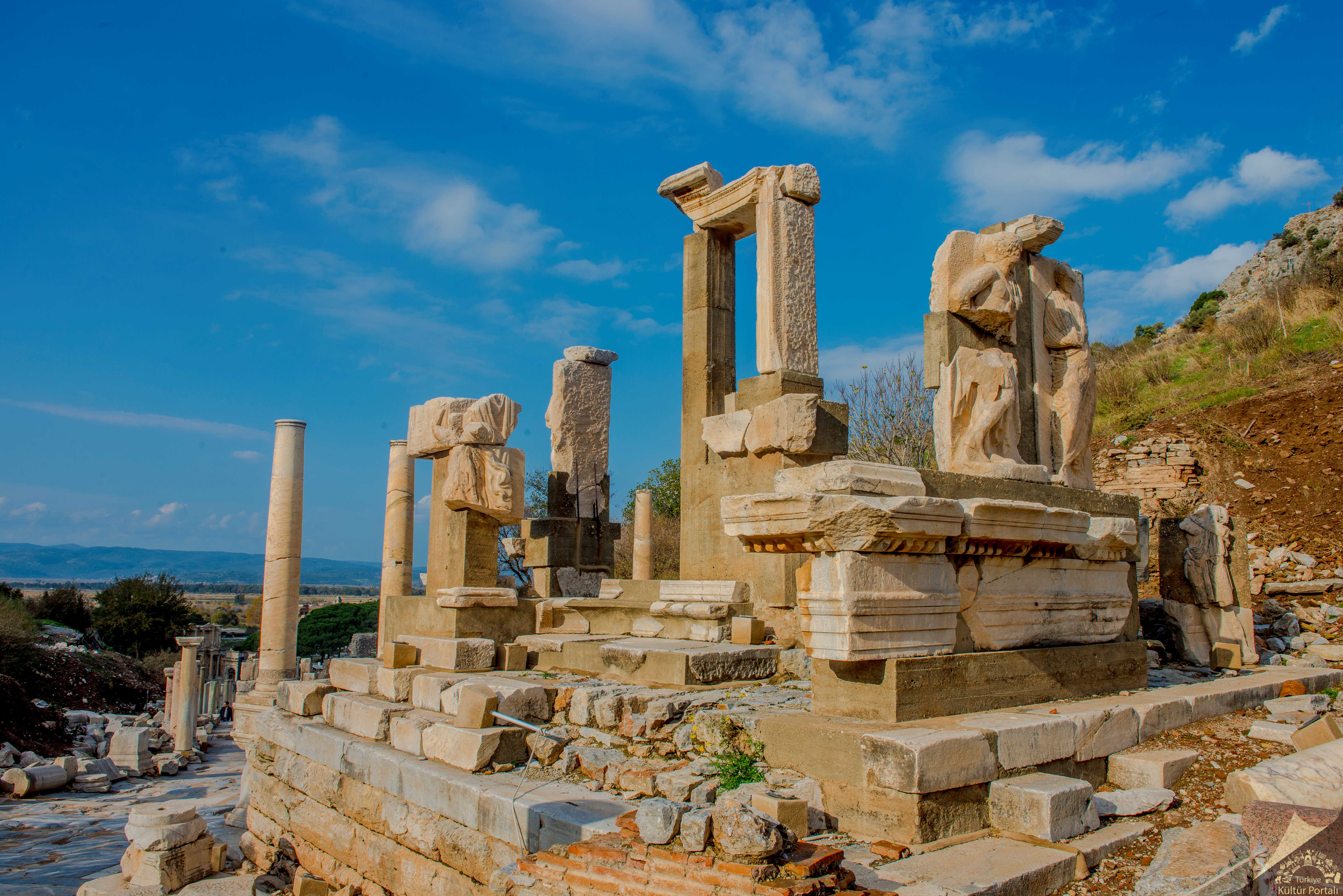 Efes, Roma yönetimi altında gelişmeye devam etti ve şehrin en ünlü simgelerinin çoğu bu dönemde inşa edildi. MS 2. yüzyılda tamamlanan Celsus Kütüphanesi, Efes'teki en etkileyici yapılardan biridir. Binlerce parşömeni barındıran iki katlı bir yapıydı ve cephesi dört erdemin heykelleriyle süslenmişti: bilgelik, bilgi, zeka ve yiğitlik. Kütüphane MS 3. yüzyılda yıkıldı, ancak kalıntıları özenle restore edildi ve şu anda önemli bir turistik cazibe merkezi.