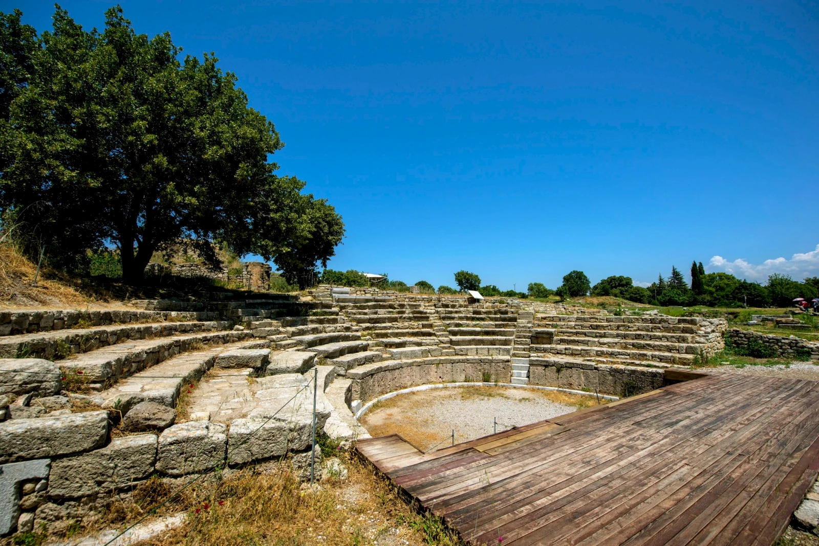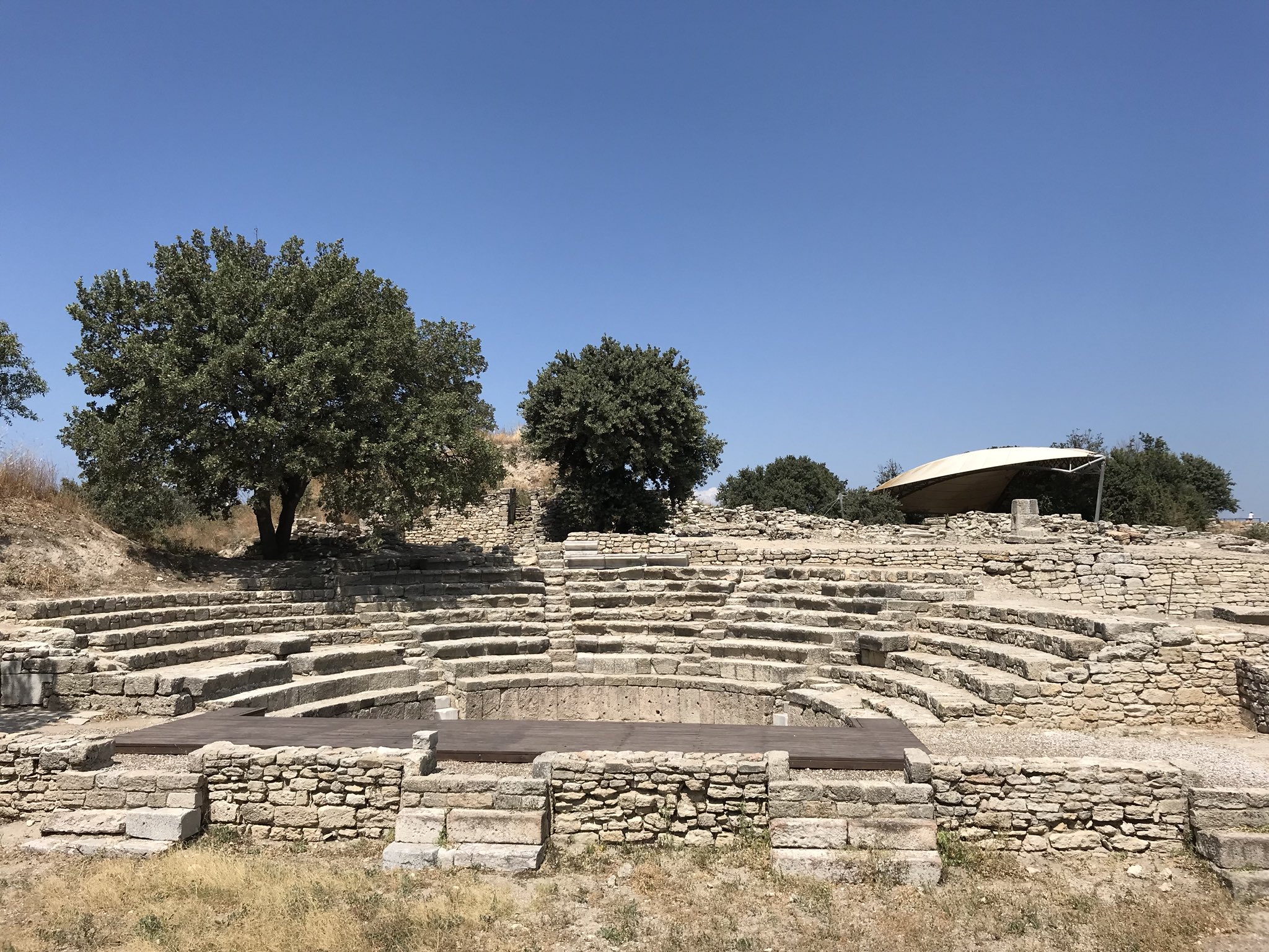 Troia'daki en etkileyici yapılardan biri, kentin Helenistik dönemden kalma tiyatrosudur. 5.000 kişiye kadar oturma kapasitesine sahipti ve oyunlar, müzik performansları ve diğer kültürel etkinlikler için kullanılıyordu.